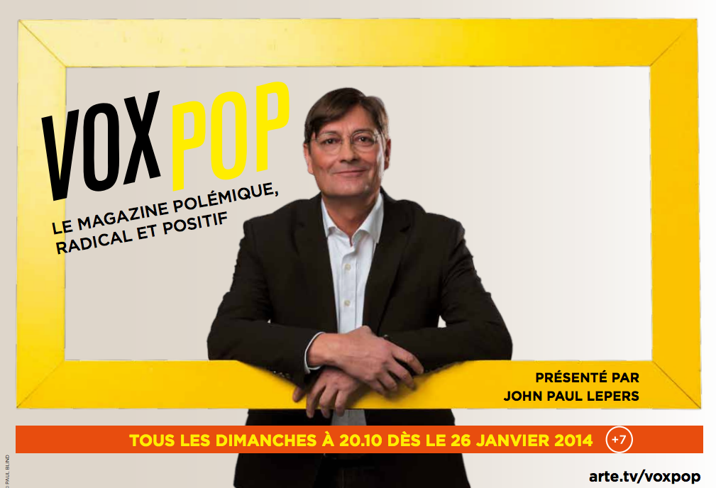 Chaque dimanche à 20h10 dès le 26 janvier 2014, ARTE proposera le nouveau magazine de 26 minutes : VOX POP, présenté par John Paul Lepers, réalisé par Nicolas Thépot et coproduit par ARTE France et Magneto Presse. Rediffusée sur LaTéléLibre!