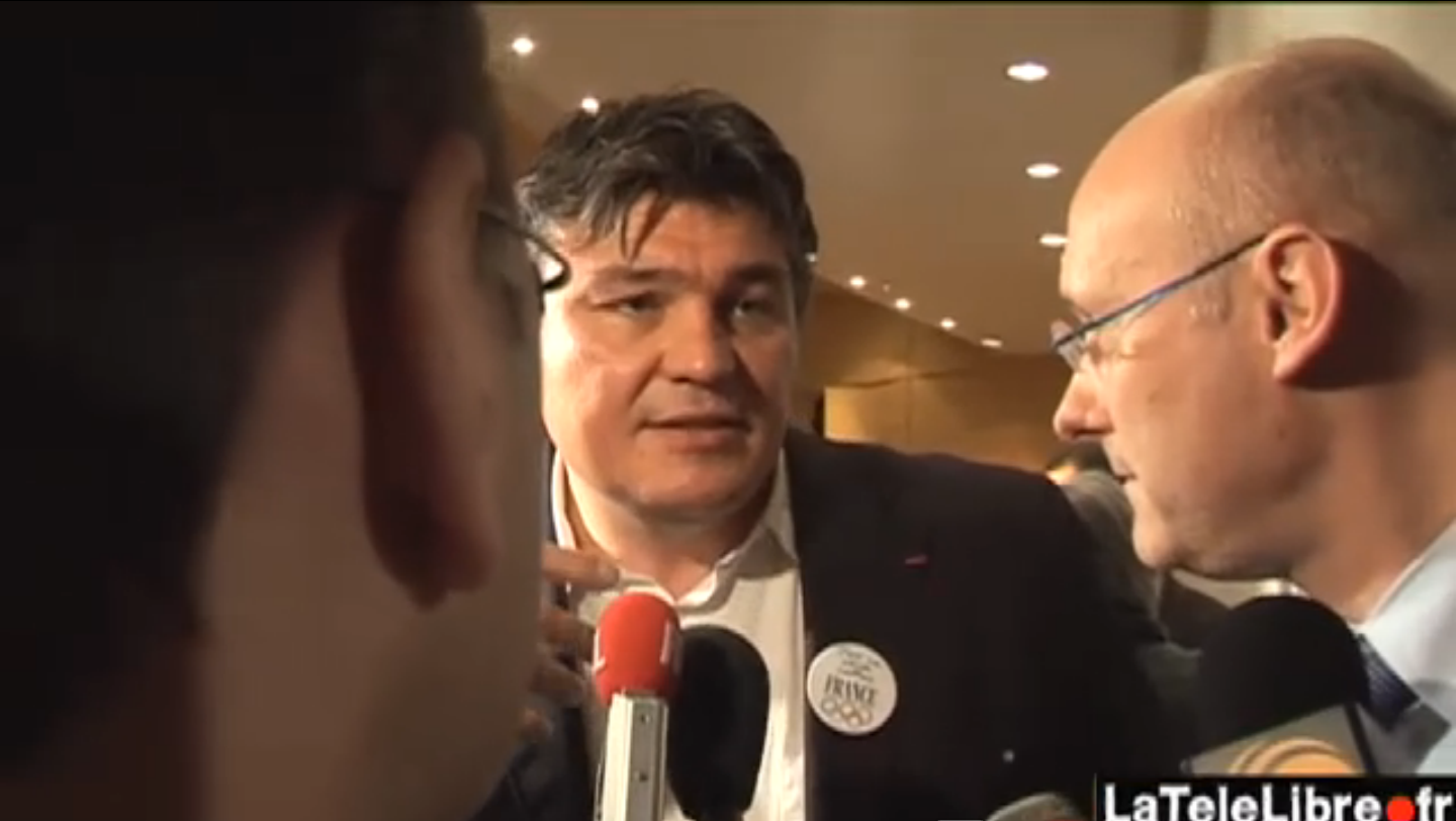 Au micro de la Télé Libre, une journaliste chinoise de Hongkong, Stéphane Diagana qui demande au CIO d’être plus exigeant face aux chinois, et un David Douillet, aux anges, soutenu par un Bernard Laporte déterminé, mais déjà inquiet pour le passage de la flamme à Paris, qui aura lieu trois jours plus tard.